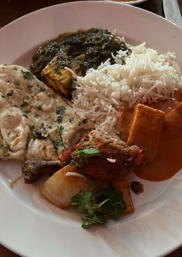 Andoori's chicken, Tikka Masala, Sagg panner, garlic naan, rice